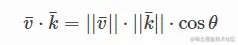 两个向量的点乘等于它们的数乘结果乘以两个向量之间夹角的余弦值