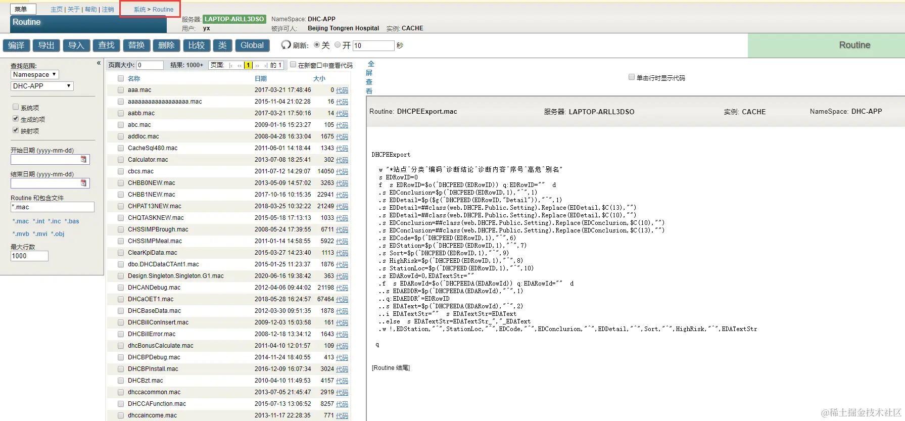 例程的ObjectScript INT(中间)代码存储在^ROUTINE全局变量中。 ^ROUTINE仅可以访问当前名称空间中的例程。 ^ROUTINE在磁盘上显示例程的INT代码版本,而不是当前加载的例程。