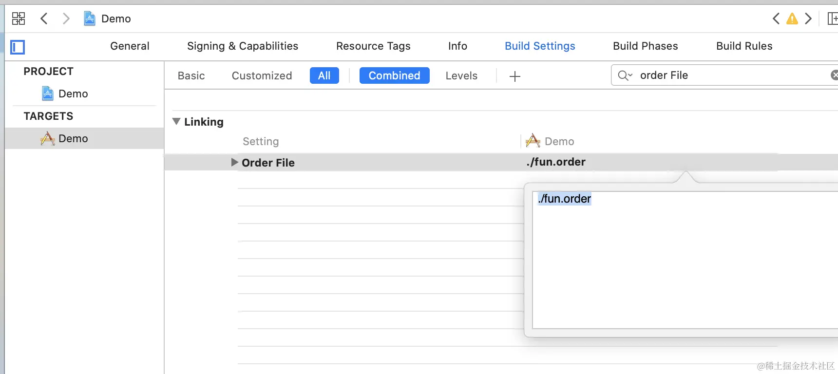 - 指定.order文件路径- Build Settings - order file。