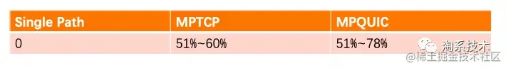 技术层面上,和MPTCP不同,我们自研的MPQUIC采取了全新的算法设计,这使得MPQUIC相比于MPTCP性能更加优化,解决了slow path blocking问题。在弱网中的性能比以往提升30%以上。