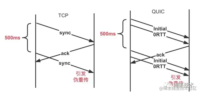 图9. TCP和QUIC握手阶段 - 伪重传模拟