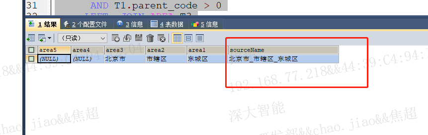解释下,为啥要多使用area5是因为如果存在四级关系,可以通过area5这个字段为空,area4不为空来进行字段的拼接,比如