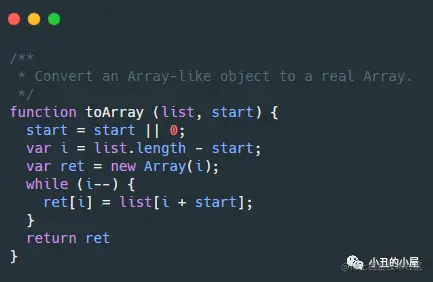 toArray方法的作用是把类似数组的对象转化成真正的数组,源码如下图: