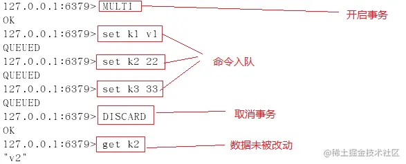discard : 取消事务,放弃事务块中的所有命令