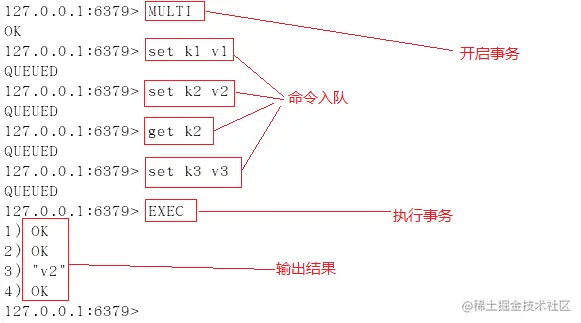 Redis事务的三个阶段: