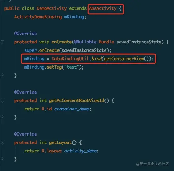 这个ActivityDemoBinding类是由databinding根据xml文件自动生成的,跟butterknife一样的原理