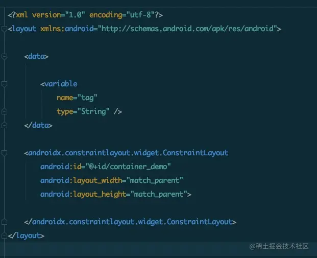 在根布局中加入layout标签,加入data标签,type是上面baseActivity创建的viewModel