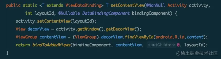 其实DataBindingUtil.setContentView 方法最后也是调用的bind()方法去绑定布局,只是在前一步先调用了activity的setcontentView