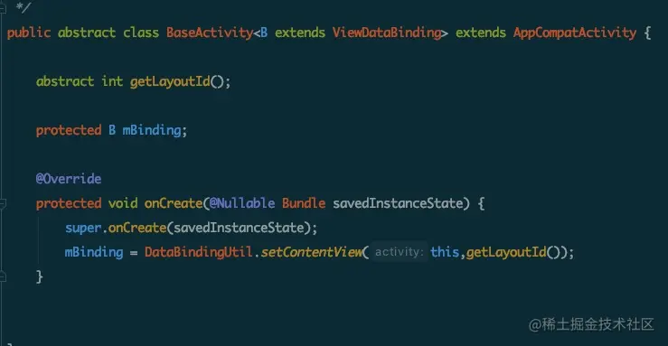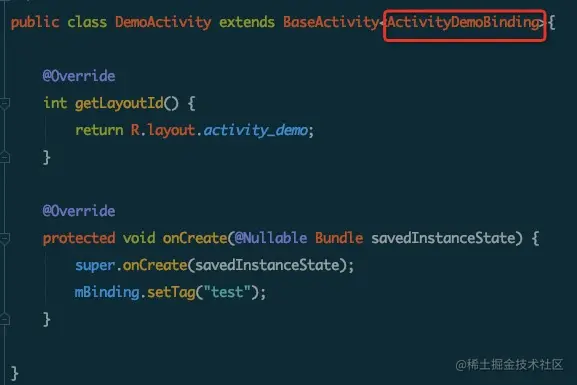 - 1.修改BaseActivity类,适合新建的项目,用 DataBindingUtil.setContentView