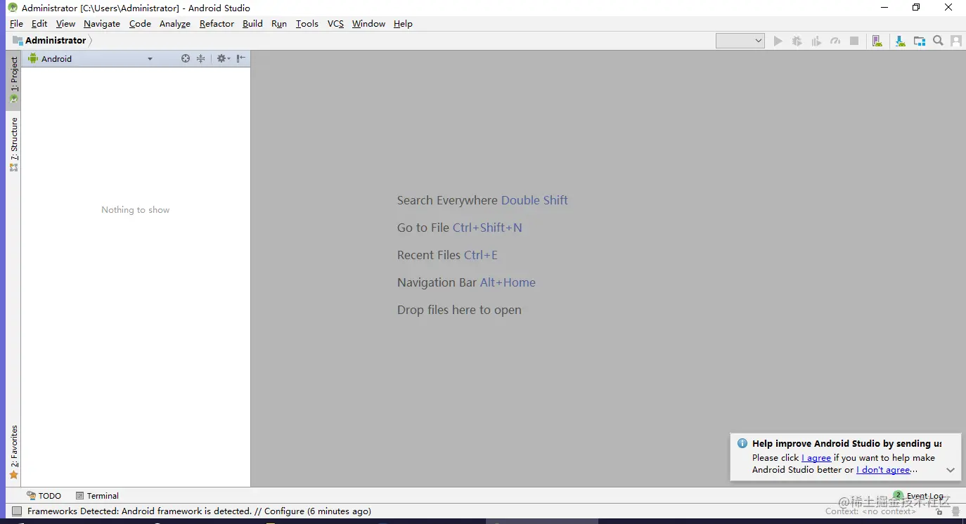 本节课主要学习了Android studio 的工具安装、基本功能的使用。