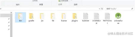 1.当桌面没有android-studio的快捷方式时,为了方便使用,需要将android-studio快捷方式发送到桌面,找到刚刚android-studio的安装路径,如图5.8所示。这里,大家看到很多文件夹,但是不要去点击uninstall 因为它是卸载快捷键,也不要把快捷键添加到桌面。