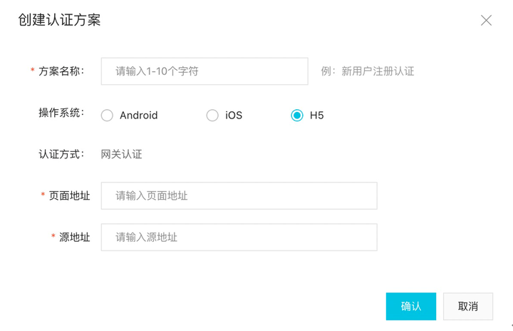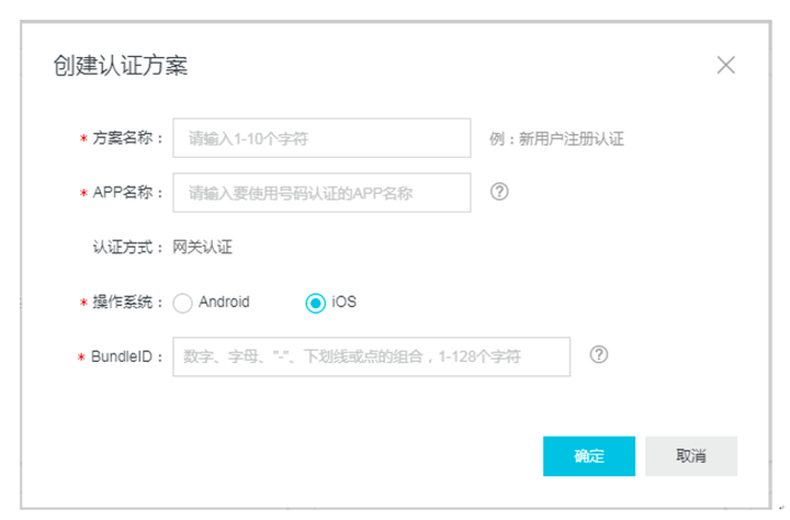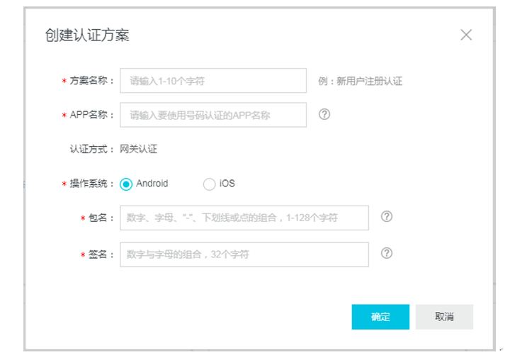 1、登录阿里云号码认证服务控制台; 2、创建认证方案;