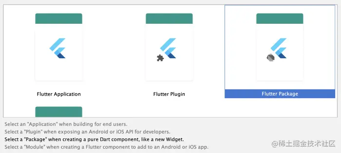 现在我们已经有了Flutter应用程序,我们要创建库,选择文件->新建->新建Flutter项目并选择Flutter包。这将是我们的Pure Dart实现。