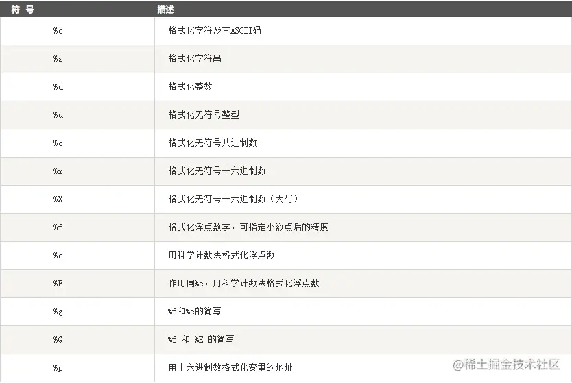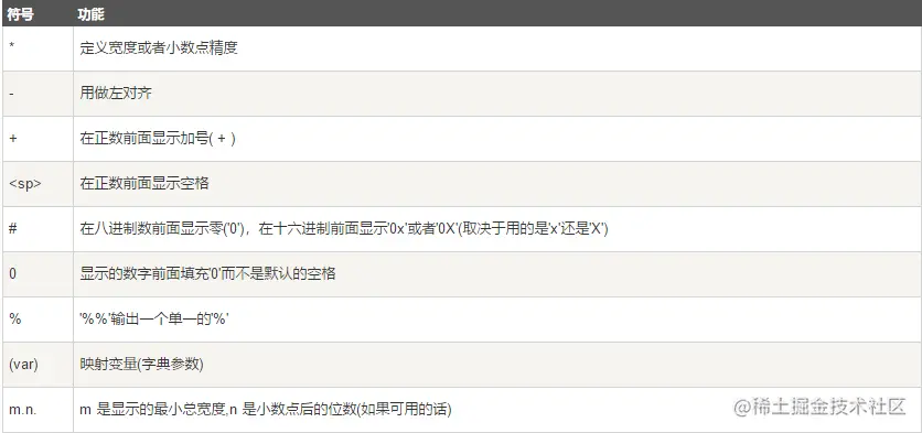 在 Python 中,字符串格式化使用与 C 中 sprintf 函数一样的语法。