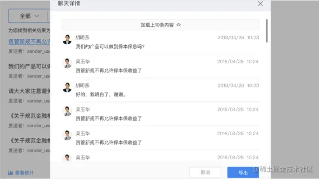经过多年的发展,Finchat这一整套面向金融行业的合规通讯协同平台,已经积累了不少行业用户,银行方面有诸如工商银行(广东分行),机构方面有中国基金业协会、证通云等,券商方面有诸如华泰证券、广发证券、长城证券、国盛证券等用户,保险行业有的鼎诚人寿等。这些客户的使用,是因为能满足业务需要,也是对Finchat产品质量的认可。