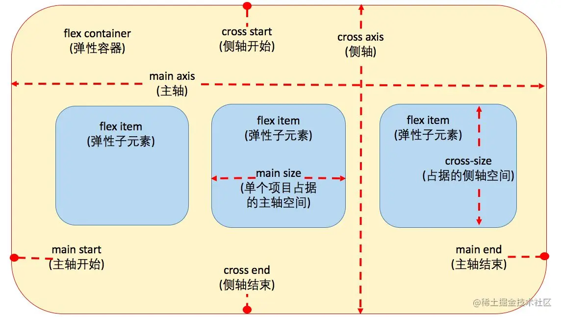 flex容器(flex container):即采用Flex布局的元素。它的所有子元素自动成为容器成员,称为Flex项目(flex item)