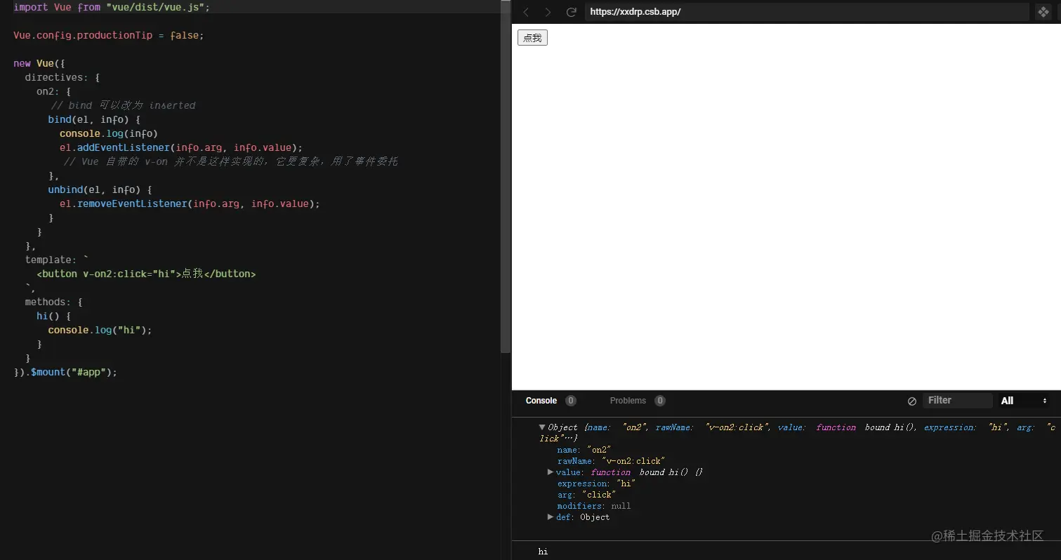 这样,新的指令v-on2就创建成功了