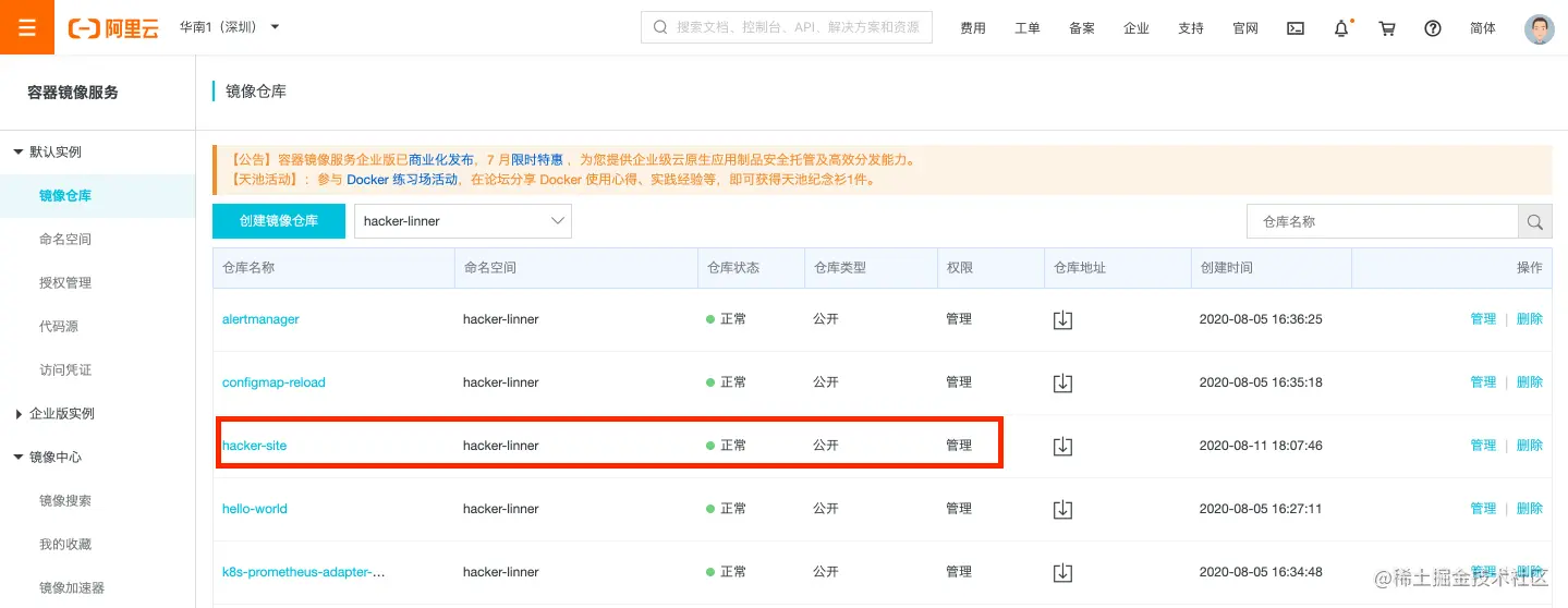 docker push registry.cn-shenzhen.aliyuncs.com/hacker-linner/hacker-site:build