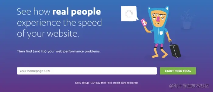 - 使用真实的浏览器测试Web站点,模拟真实的用户进行请求连接,收集以用户为中心的重要指标,如:响应速度指标、第一视觉呈现