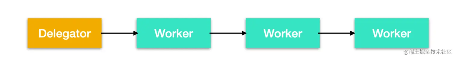 并行 worker 的核心思想是,它主要有两个进程即代理人和工人,Delegator 负责接收来自客户端的任务并把任务下发,交给具体的 Worker 进行处理,Worker 处理完成后把结果返回给 Delegator,在 Delegator 接收到 Worker 处理的结果后对其进行汇总,然后交给客户端。