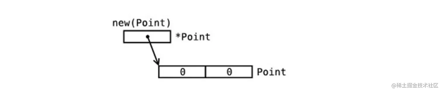 写这条语句的惯用方法是:t := new(T),变量 t 是一个指向 T的指针,此时结构体字段的值是它们所属类型的零值。