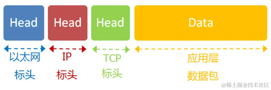 "标头"部分主要包括版本、长度、IP地址等信息,"数据"部分则是IP数据包的具体内容。它放进以太网数据包后,以太网数据包就变成了下面这样。