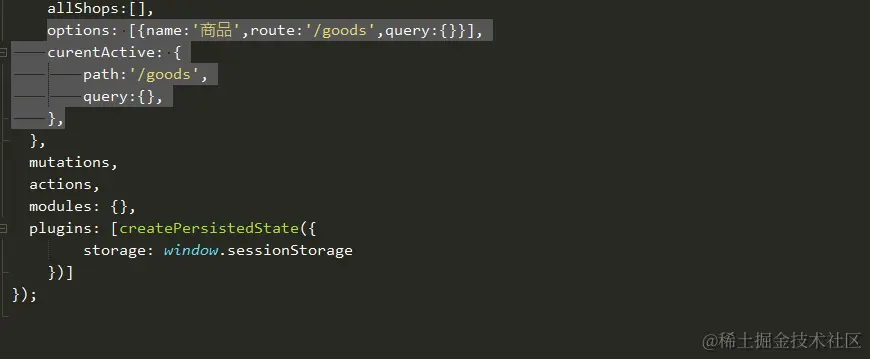 首先store/index.js中配置 state的属性 配置当前点击的路由 和 已经存储的数组