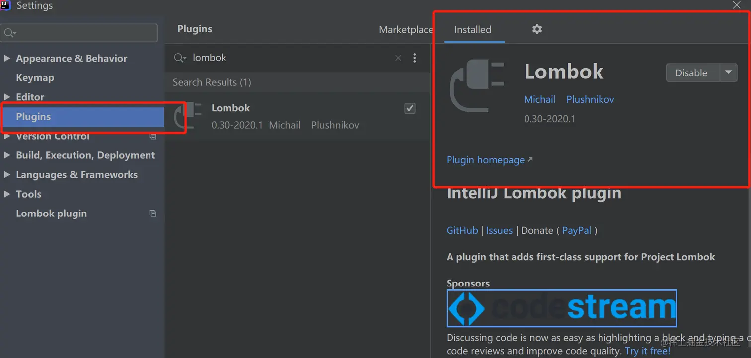 - idea中安装lombok插件