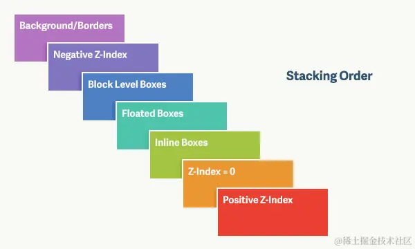 为了更好地理清这些问题,我们有必要进一步理解与 z-index 工作原理相关的一些概念,也就是层叠上下文、层叠等级和层叠顺序。