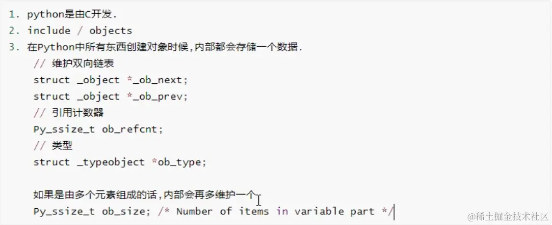 - 非容器类对象,python创建的时候会把它们单独加到一个双向链表里,与容器类对象的双向链表区别开。