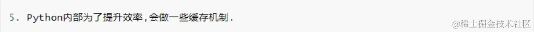 - 当引用计数为0的时候,按道理应该要进行垃圾回收,销毁它,释放内存。但是python内部有一个驻留机制,类似**“内存空间缓存”**的东西。