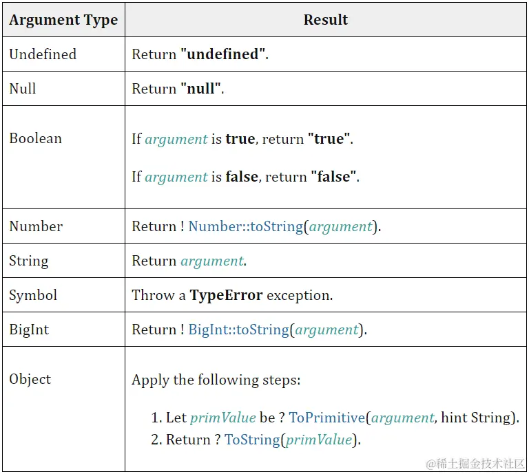 下面介绍的方法均为规范中类型转换的实现,JS 引擎没有暴露相关函数。