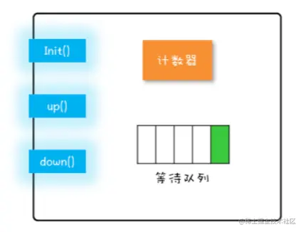 我们用一个 List来保存对象实例,用 Semaphore 实现限流器。关键的代码是 ObjPool 里面的 exec() 方法,这个方法里面实现了限流的功能。在这个方法里面,我们首先调用 acquire() 方法(与之匹配的是在 finally 里面调用 release() 方法),假设对象池的大小是 10,信号量的计数器初始化为 10,那么前 10 个线程调用 acquire() 方法,都能继续执行,相当于通过了信号灯,而其他线程则会阻塞在 acquire() 方法上。对于通过信号灯的线程,我们为每个线程分配了一个对象 t(这个分配工作是通过 pool.remove(0) 实现的),分配完之后会执行一个回调函数 func,而函数的参数正是前面分配的对象 t ;执行完回调函数之后,它们就会释放对象(这个释放工作是通过 pool.add(t) 实现的),同时调用 release() 方法来更新信号量的计数器。如果此时信号量里计数器的值小于等于 0,那么说明有线程在等待,此时会自动唤醒等待的线程。
