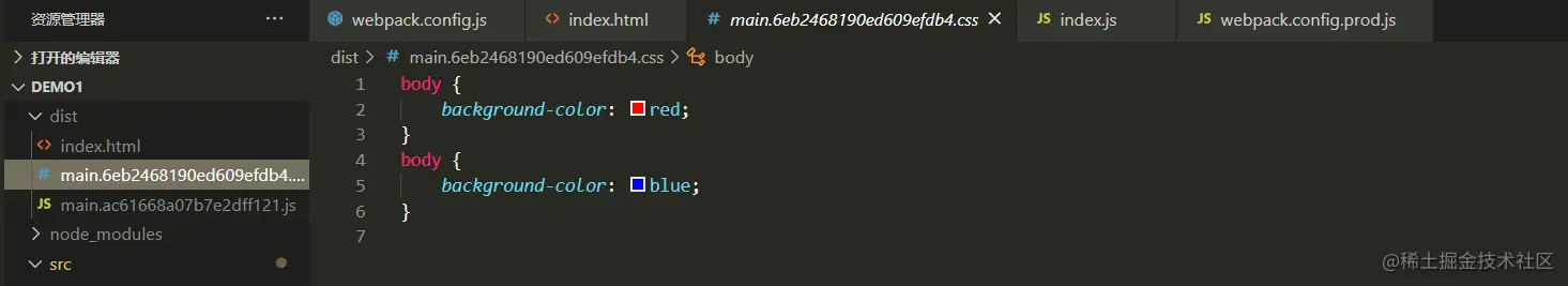 两个文件中的css代码都生成到了一个文件中。