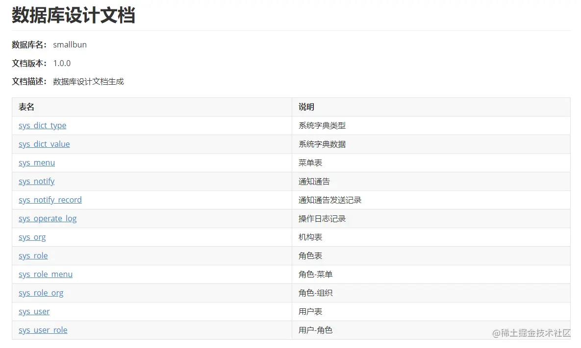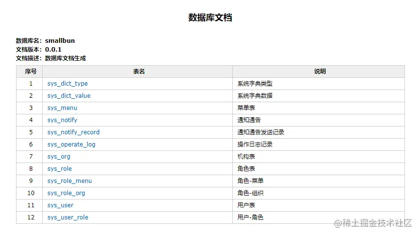 .description("数据库设计文档生成")