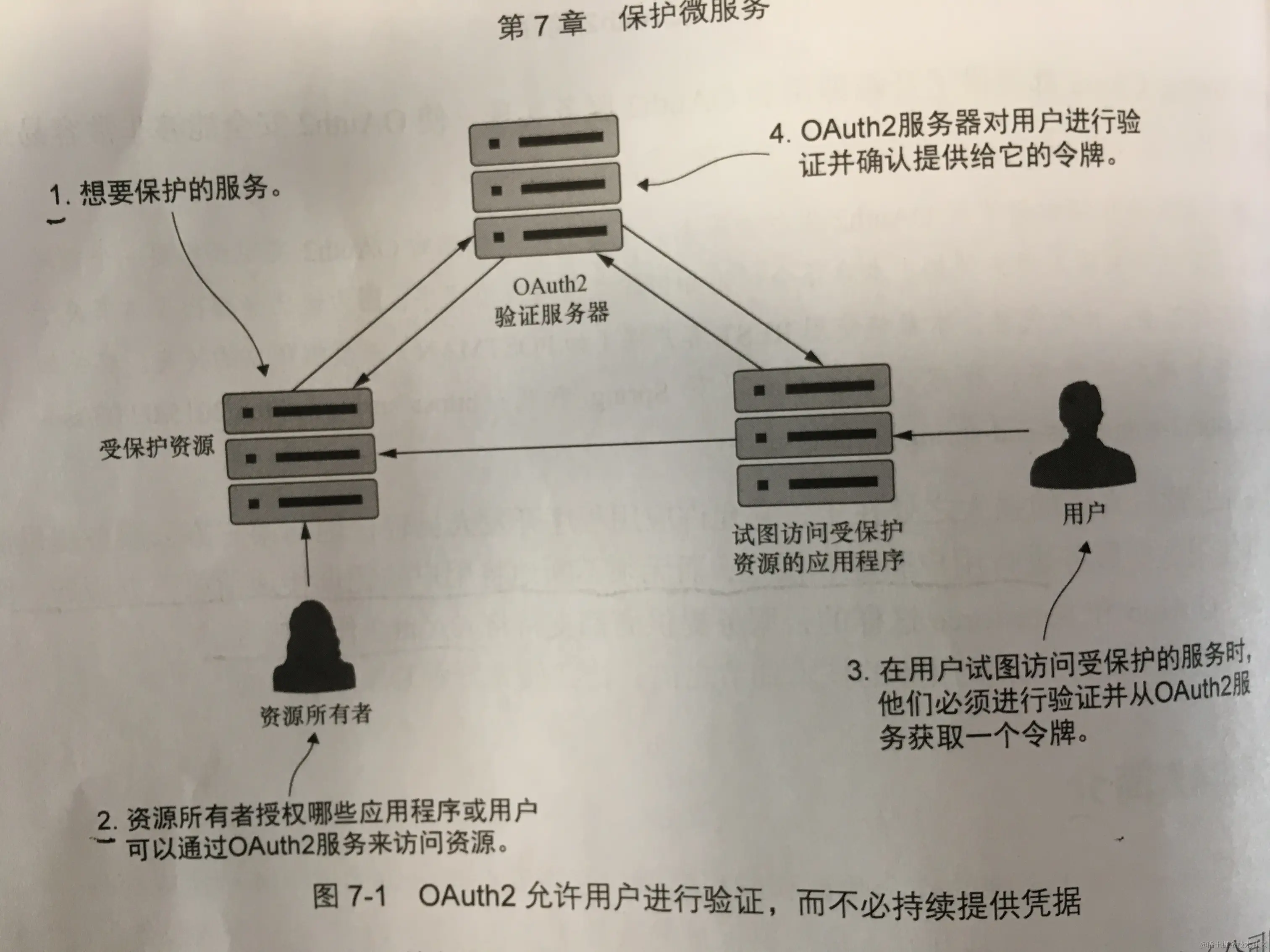 OAuth2是一个基于令牌的安全验证和授权框架,它将安全性分解为以下4个组成部分。