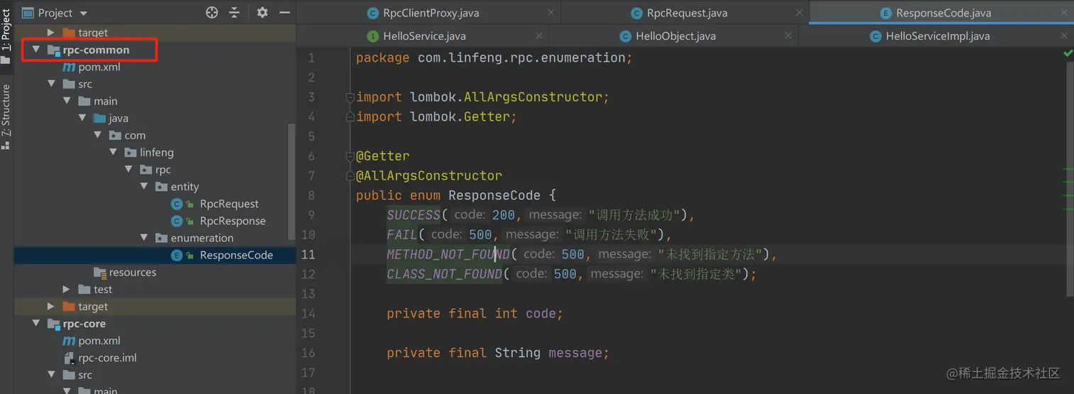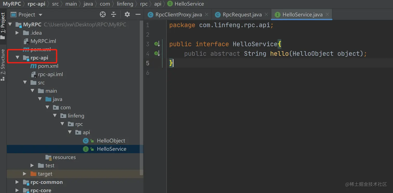 - rpc-api:客户端和服务端的公共调用接口