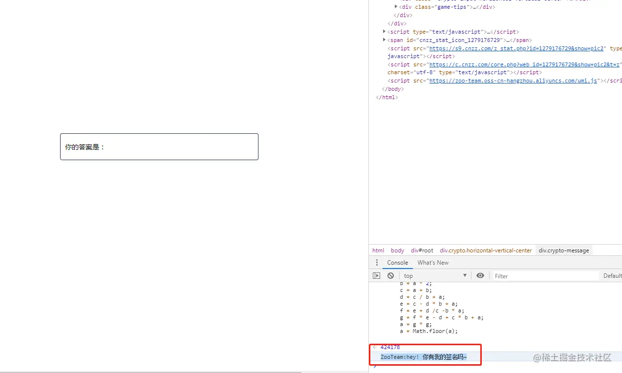 同样F12, dom结构最后面的代码,执行一下,得出数字输入进去 424178