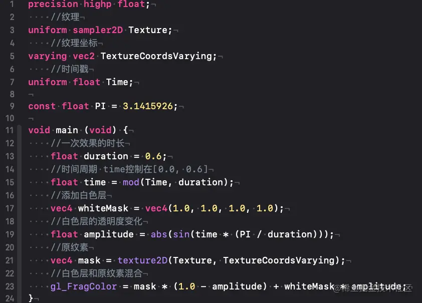 片元着色器 :添加⽩色图层 ,⽩色图层的透明度随着时间变化