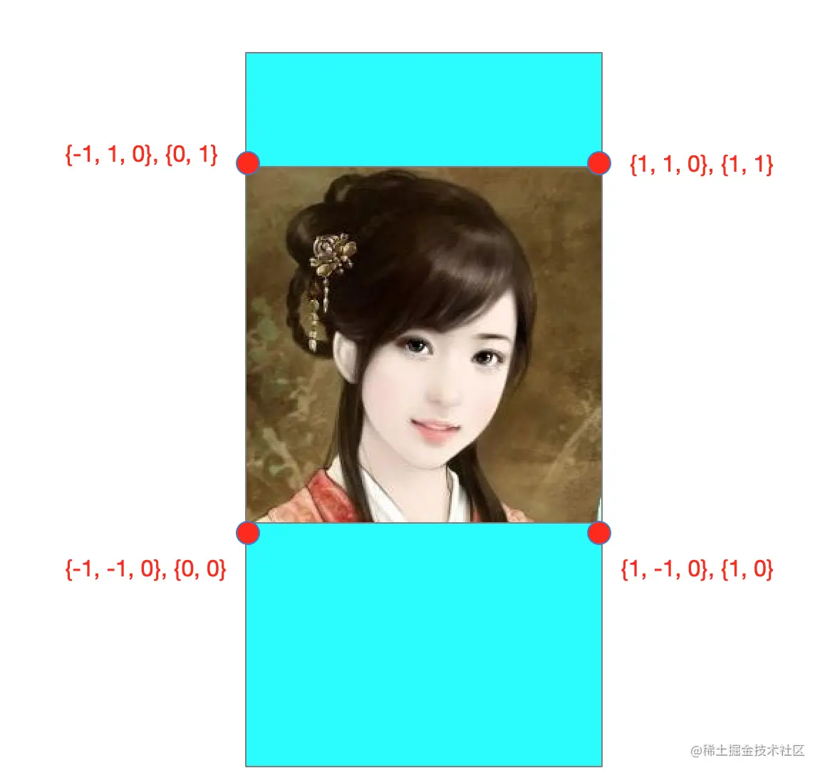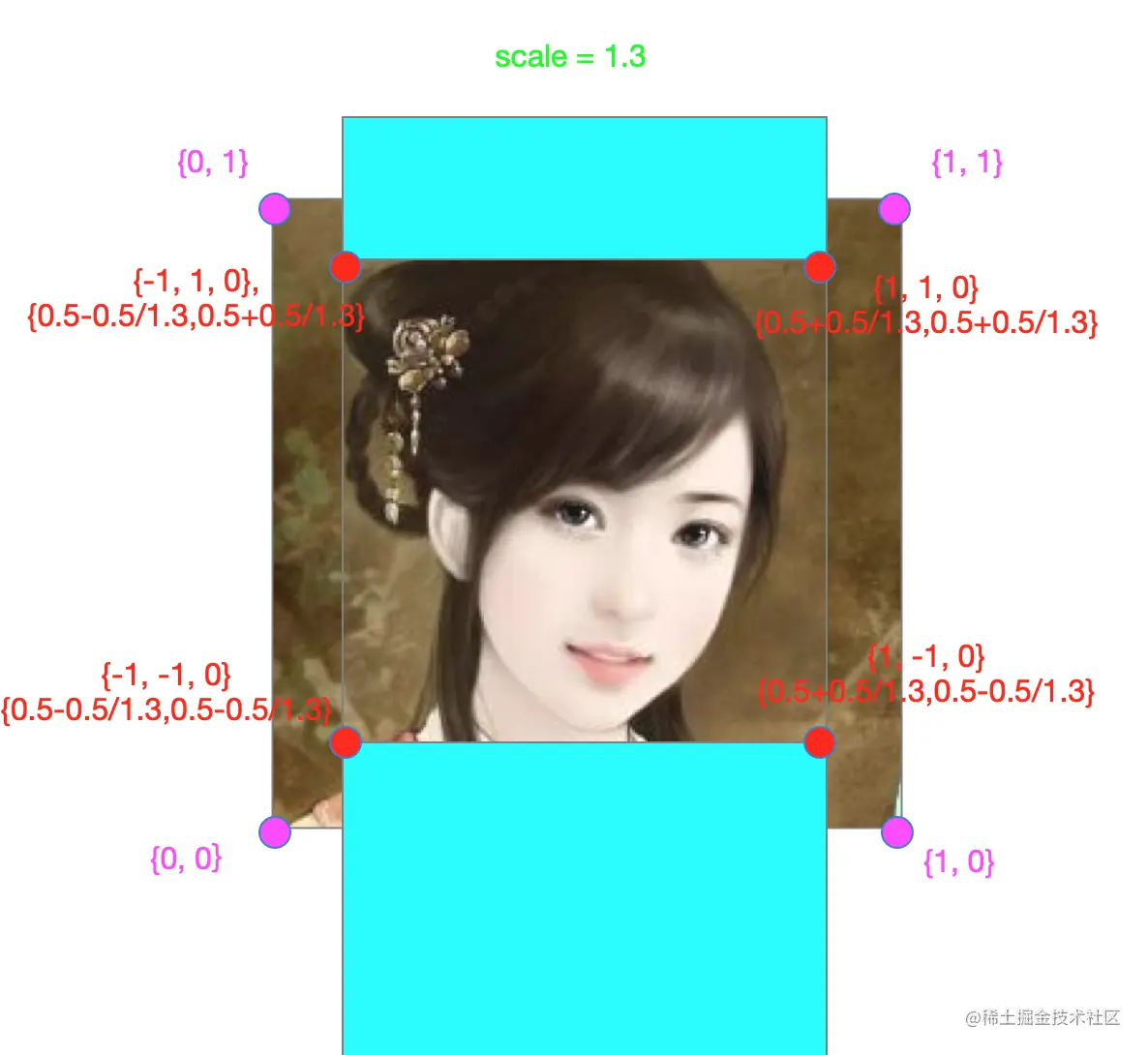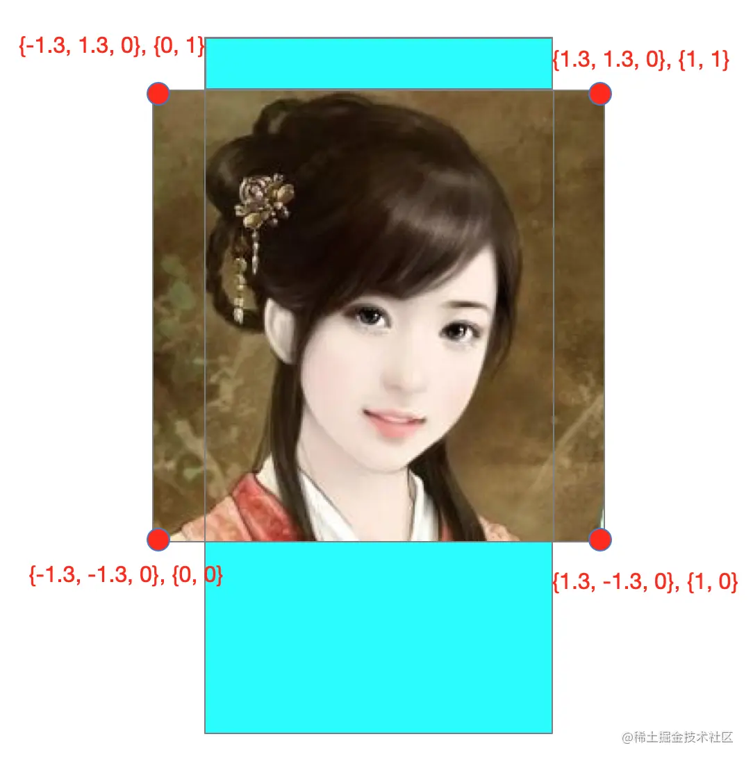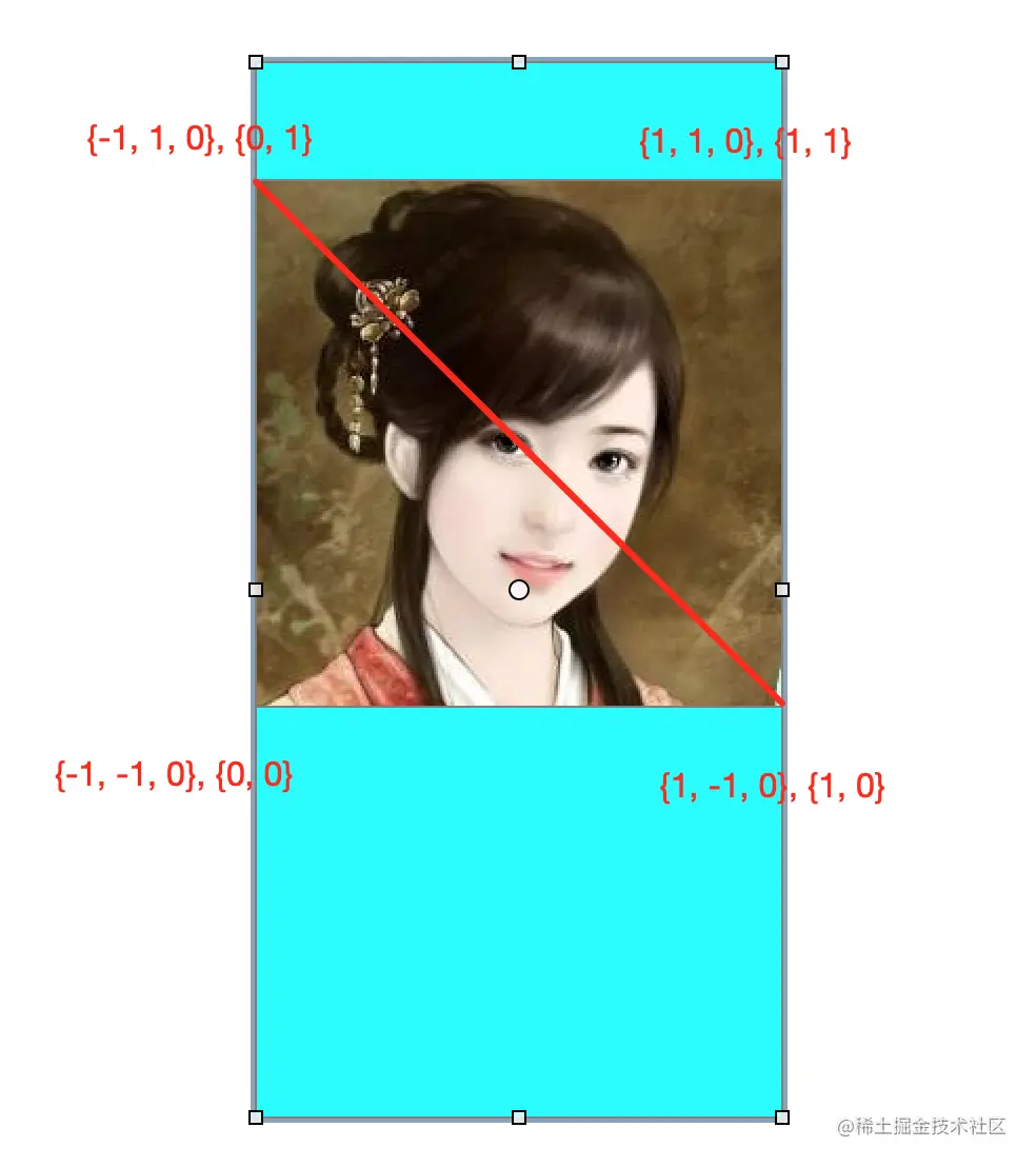 放大原理 将顶点坐标对应的纹理往中心位置靠拢 不放大时纹理映射关系如下: