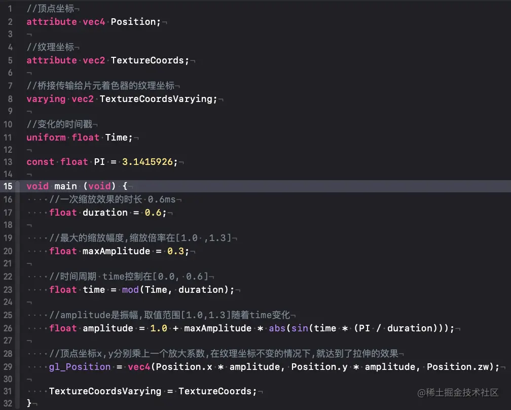 原理 :随着时间戳改变放大顶点坐标的倍率