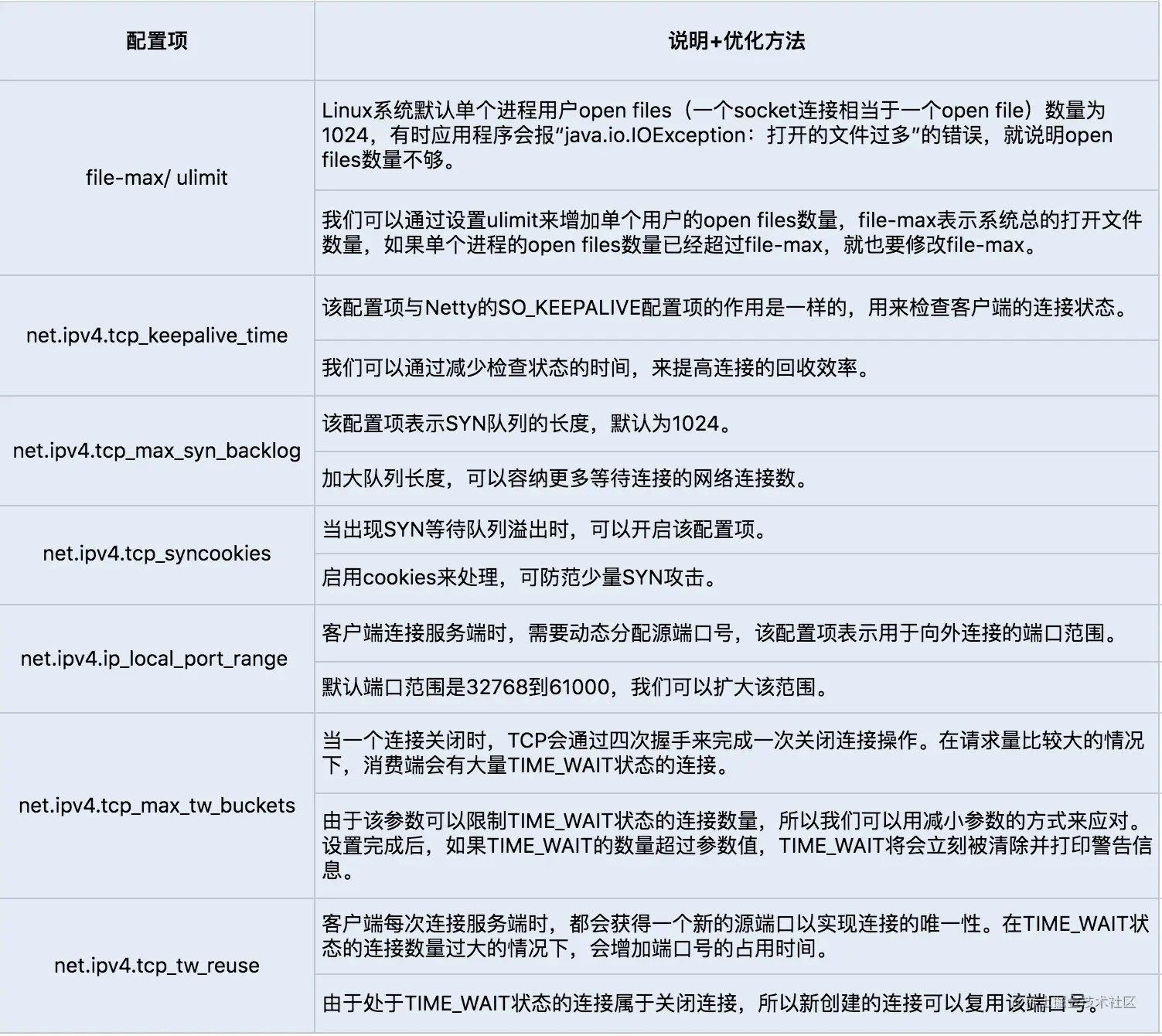以上就是我们从不同层次对 RPC 优化的详解,除了最后的 Linux 系统中 TCP 的配置项设置调优,其它的调优更多是从代码编程优化的角度出发,最终实现了一套 RPC 通信框架的优化路径。
