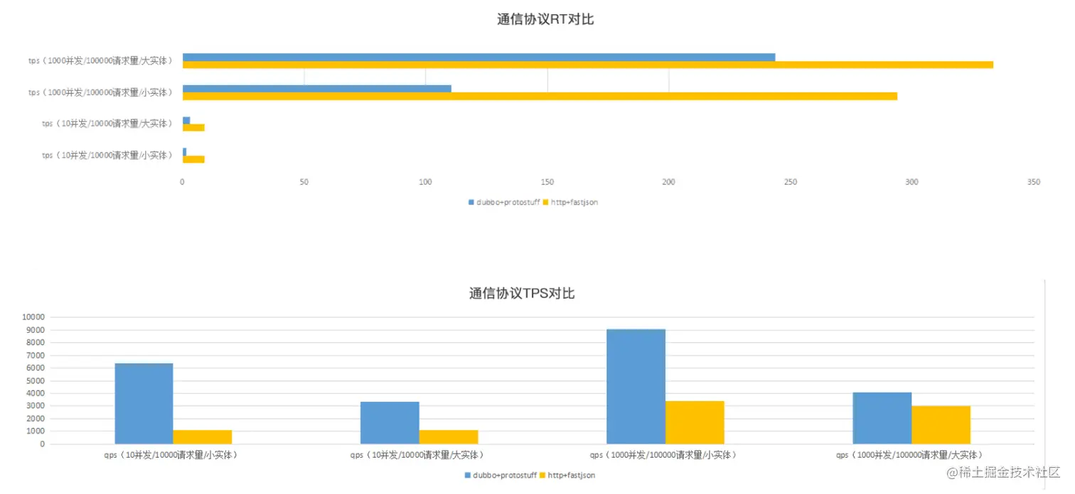 Dubbo+Protobuf 序列化以及 Http+Json 序列化的通信性能: