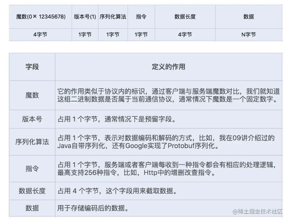 对于实现一个好的网络通信协议来说,兼容优秀的序列化框架是非常重要的。如果只是单纯的数据对象传输,我们可以选择性能相对较好的 Protobuf 序列化,有利于提高网络通信的性能。