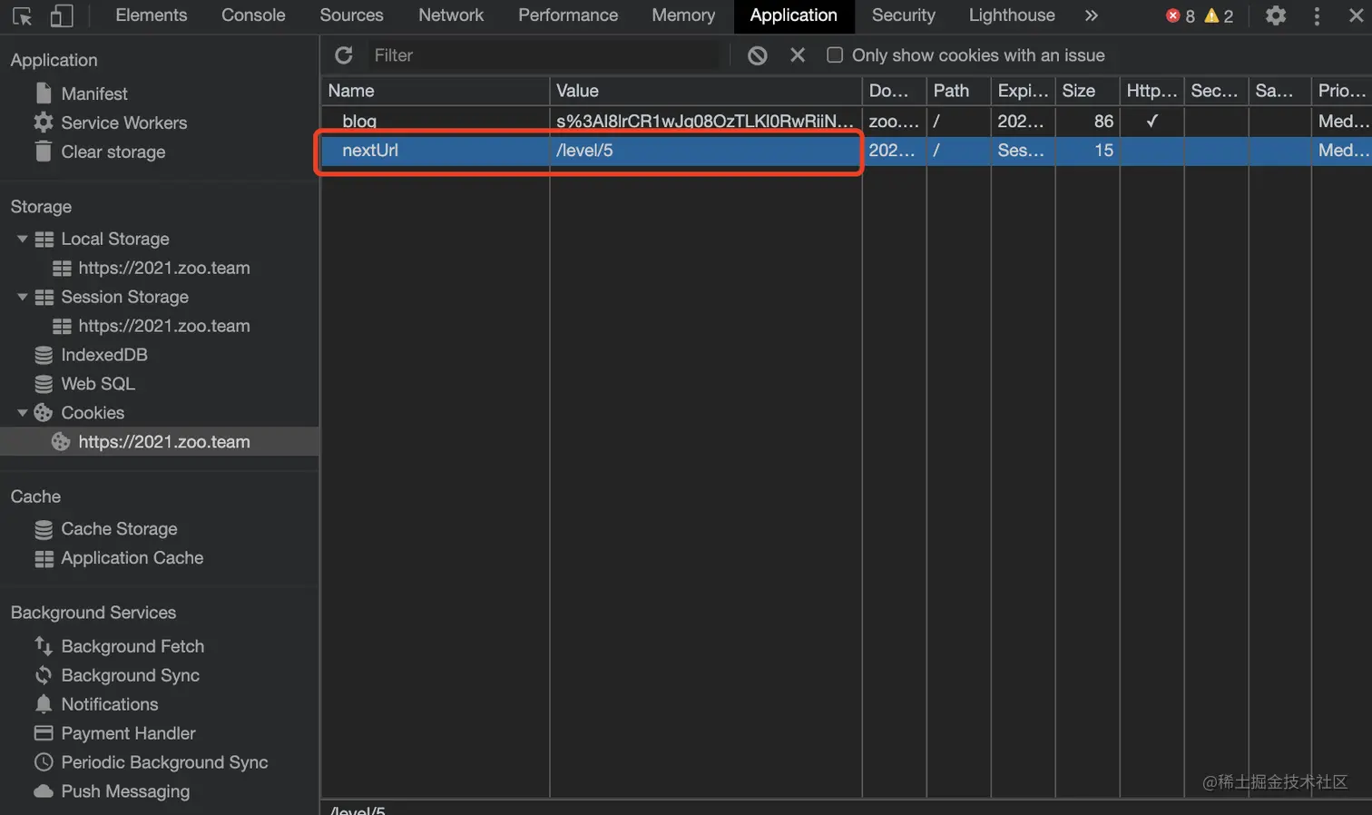 状态码200,那就一个个点击嘛,最后在 Cookies 里就看到 nextUrl,地址栏输入/level/5