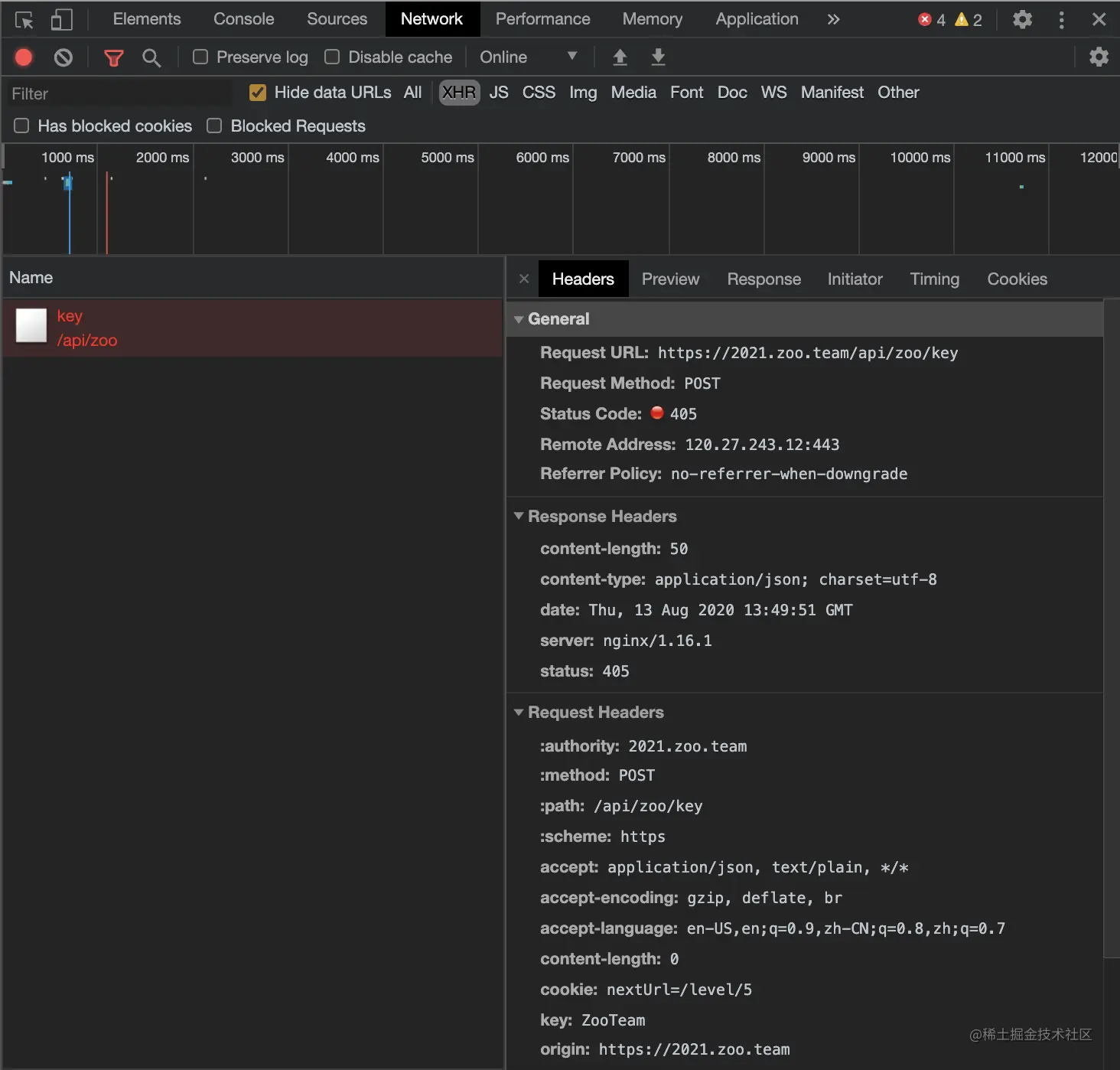 code 405,简单啊,method not allowed,look 一下请求方式是 Get 还是 Post,请求静态资源是不能用 Post 方法的,所以查看 Headers,看到是Post,