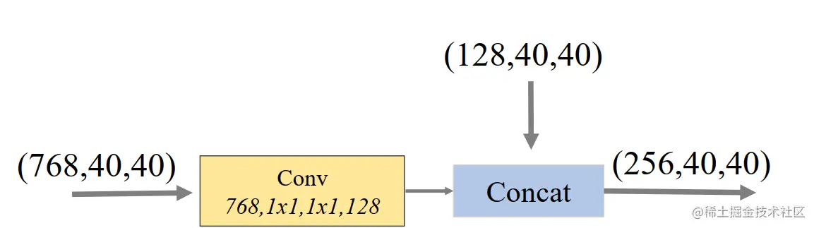 FFM1(Feature Fusion Module) FFM1的作用是将backbone中2个层次的特征融合,形成上图中的base feature。由于FFM1输入端的2个特征图尺寸不同,因此FFM1内部需要有一个上采样操作。FFM1的结构图如下所示: