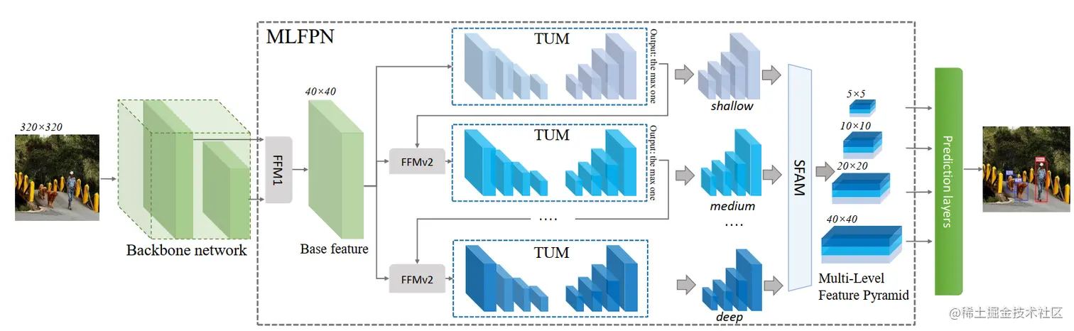 以MLFPN为核心构建目标检测网络,特点如下: