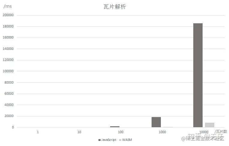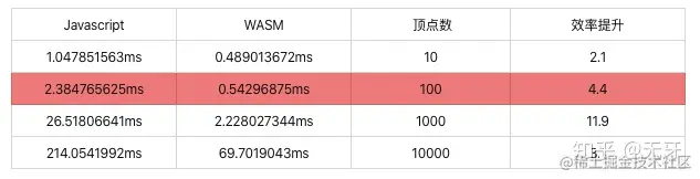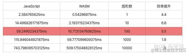 对于一次性加载一屏的建筑物,大约 100 左右的图形数,每个图形以 100 个顶点为例,WASM 相对于 JS 平均提效 5.5 倍左右。