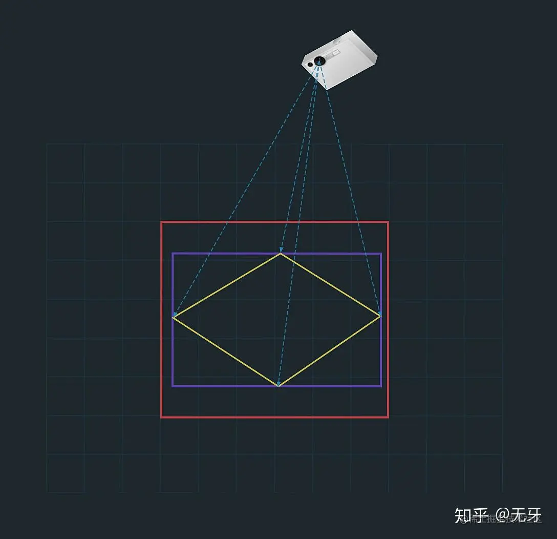 - 首先通过相机视锥与 XOZ 平面的交点算出视窗的梯形范围,也是可视区域。
